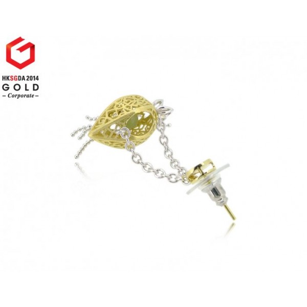 These silver earrings are like a Starfruit Lantern, the famous lantern of the Mid-Autumn festival in Hong Kong. The Starfruit Lantern’s body is made with our brand’s special texture. We set a nature fluorite inside the body. When you put the earrings in a dark area, it will fluoresce like a real lantern.